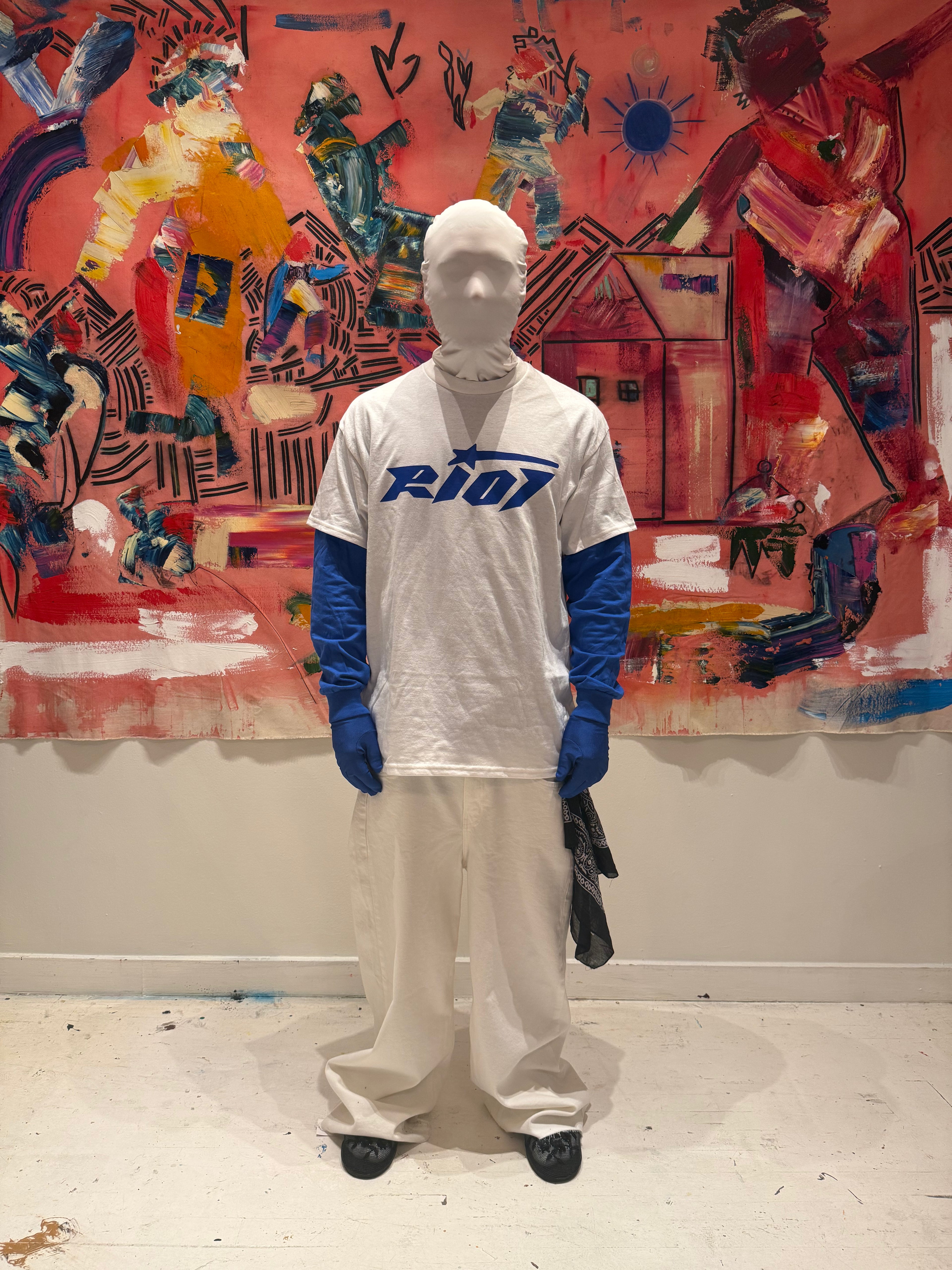 White Classic Riot T-Shirt ( Blue Logo )